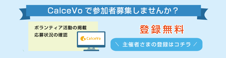 CalceVoでは、主催者様の方で、自由にボランティア活動の掲載、参加者募集をして頂けます。